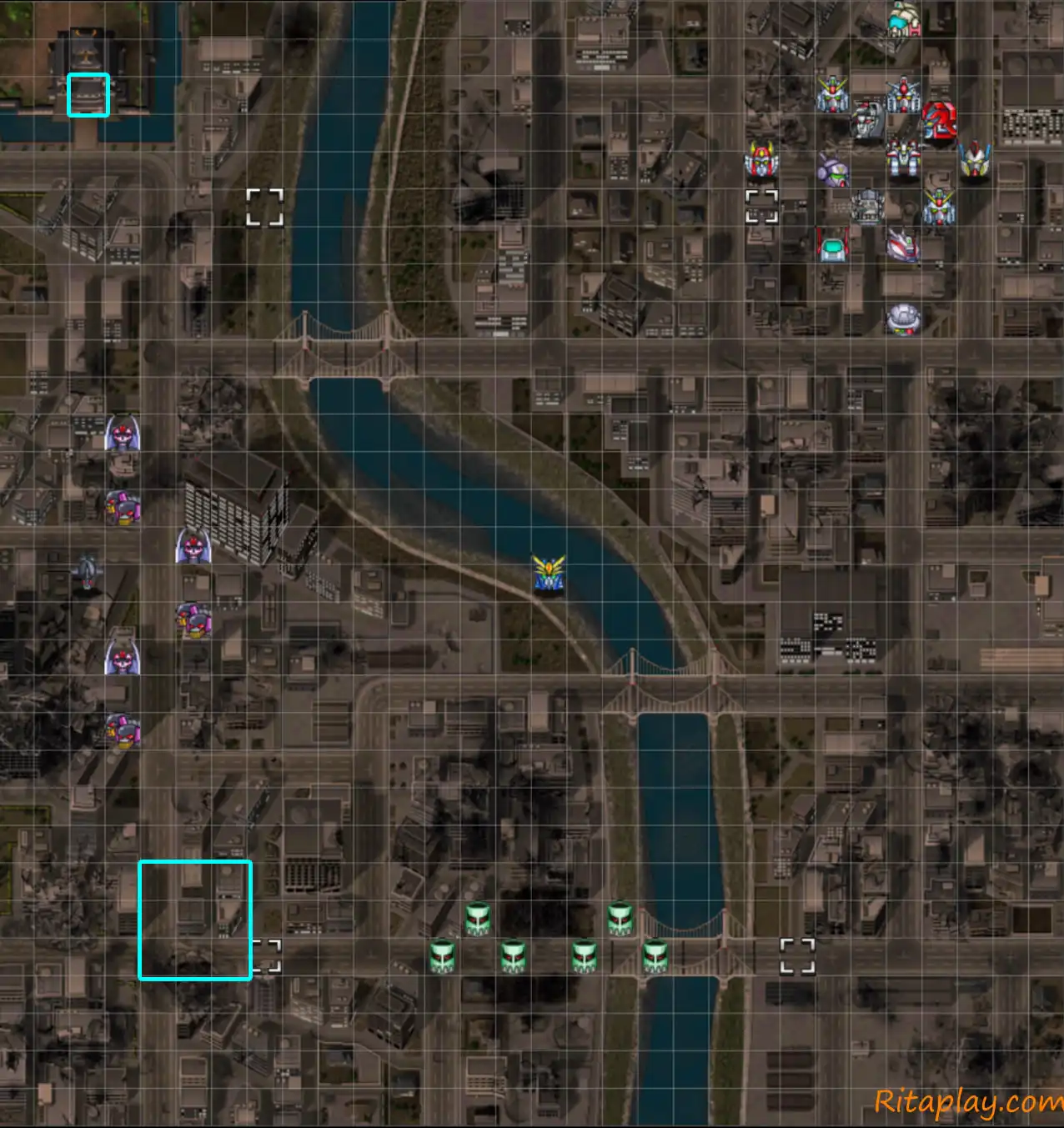 戰略方針:本關雖然沒有增援,不過奇數和偶數次進入本關登場的敵人都不一樣,筆者把奇數次的敵人列在增援A,偶數次的敵人列在增援B,其實是沒有增援的。本關若把ライジンオー故意跑去被擊破,可以發生劇情取得巨大からくり雷神王,其正式加入在33話後,特色是修理費只要100塊。